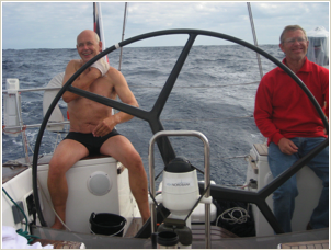 Wir hatten eine ruhige Nacht. Es wird immer wärmer. Der Wind ist flau, und wir laufen nur 7 Knoten. Das haben wir nun davon, dass wir nicht zum Sturmtief wollten. Nach einem guten Frühstück ist allgemeiner Waschtag für die gesamte Crew. Verschiedene Stellen und Stellungen an Heck und Mast werden erprobt.