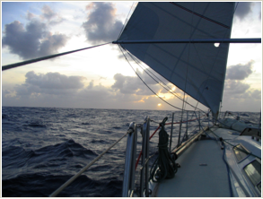 Die Nachtsegelei wird zunehmend vom Mondschein bestimmt. Bald (genau am 5.12.) ist Vollmond. Nachtsegeln mit Decksbeleuchtung. Dafür ist der Sternenhimmel weniger eindrucksvoll. Immer wieder fliegen Fische an Deck. Da sie ziemlich stinken, ist das gar nicht so erfreulich.