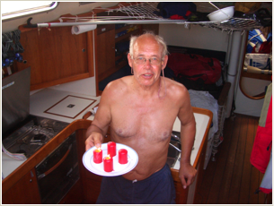 Navigationsoptionen gibt es keine mehr. Der Computer bleibt daher längst ausgeschaltet und wird nur zum E-Mail Austausch benutzt, schon um Strom zu sparen. Die Mittagsmeldung müssen nach Bordzeit immer früher abgeschickt werden, schon gleich nach dem Frühstück. Bei einer Datenrate von 9 KBit/s sind wir täglich zwischen 4 und 6 Minuten online. Das ergibt in 16 Tagen etwa 80 Iridium-Minuten für unsere Reise.