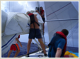 Nach acht Tagen ohne Spinnaker ziehen wir am letzten Tag der Regatta den Gennaker hoch und bauen ihn als Spinnaker aus. Bei 23 Knoten Wind rauschen wir mit WNW-Kurs auf die Nordspitze von St. Lucia