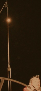 Wieder heißt es um Mitternacht „All Hands on Deck!“ Das Spinnakerfall ist am Topbeschlag durchgescheuert, das heißt genau genommen, nur der Mantel des Falls. Diesen ziehen wir mit Mühe herunter,