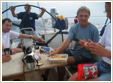 Ralf hat heute Geburtstag und er packt freudig erregt eine Reihe schöner Geschenke aus. Wir lassen ihn mehrfach hochleben. Schon um Mitternacht brachte ihm Rolf auf seine Wache einen mit
