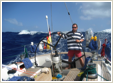 Nach einer schnellen Nacht (über 190 Meilen in 24 Stunden mit Spitzengeschwindigkeiten über 18 Knoten) zerreißt heute mittag nach einem Sonnenschuss der zweite Spinnaker. Er schlägt durch ein Loch