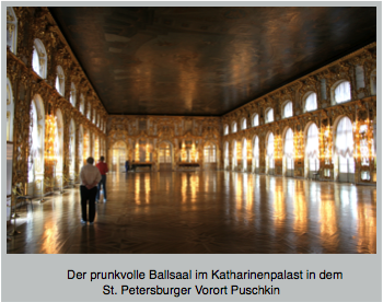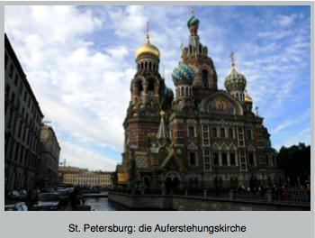 Was soll ich über St. Petersburg sagen? Natürlich ist es eine Reise wert. In der erst 300 Jahre alten Stadt begegnet einem die bewegte Geschichte der letzten hundert Jahre auf Schritt und Tritt. Angefangen vom unermesslichen Reichtum weniger (des Zaren, der Oberschicht und der Kirche), über die Oktoberrevolution, die Stalinzeit und die schreckliche neunhunderttägige Belagerung und Zerstörung der Stadt durch die Deutschen bis hin zu einer unglaublichen Wiederaufbauleistung. Wir sehen den Katharinenpalast mit dem Bernsteinzimmer als VIP-Gäste, erleben eine wunderbare Ballettaufführung im Mariinsky-Theater (drei Ballette von Balanchin zur Musik von Strawinski, Prokofjew und Bizet), besichtigen die Peter-Paul-Festung, machen einen Schnellbootausflug zum Gartenschloss Peterhof, schieben uns an den Schätzen der Eremitage im Winterpalast vorbei und bestaunten weitere Paläste und reich ausgeschmückte Kathedralen. Uns stellt sich Petersburg in den fünf Tagen, die wir dort verbringen, als eine Stadt der Kontraste dar. Auf den Flaniermeilen gibt es alle westlichen Nobelmarken im Angebot. Bootsbesitzer lassen sich zu ihren Motoryachten per Hubschrauber einfliegen. Jüngere Russen sprechen englisch und Bankomaten gibt es überall. Daneben gibt es viel Armut, die sich aber versteckt. Als Tourist fühlt man sich oft ausgenutzt. Eintrittspreise sind für Ausländer zwei- bis dreimal höher als für Russen. Und alles muss extra bezahlt werden. Wir haben jedenfalls viel Geld dort gelassen. Aber es gibt ja auch soviel zu sehen! Allerdings wird der Blick bei soviel Gold und Prunk allmählich stumpf.
