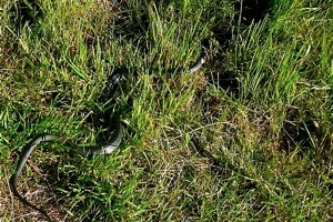 Nach einer Radtour durch die liebliche Landschaft segelten weiter nach Norden und fanden in Sunnanå einen nicht weniger idyllischen Platz. Weiter ging's nun bei wechselhaftem Wetter im Uhrzeigersinn um den Vänersee zunächst bis Köpmannebro und Upperud, das hinter der ersten Schleuse zum Dalslandkanal liegt. Ein kleines Boot mit Dampfmaschinenantrieb brachte uns von Upperud nach Håverud, wo die dortigen Stromschnellen durch übereinander liegende Schiffs-, Autobahn- und Eisenbahnbrücken überwunden werden. Das einzigartige Aquädukt lockt jährlich eine halbe Million Besucher an. Die Weiterfahrt durch den Dalslandkanal, der über zahlreiche Seen bis nach Strömstad und Oslo führen kann, unternahmen wir allerdings nicht, da dafür kleinere Boote besser geeignet sind. Stattdessen segelten wir ostwärts über den Vänern in den Lurön-Schärengarten und ankerten in der Bösshamn Bucht. Gut markierte Wanderwege führen dort durch naturbelassene Wälder zu verlassenen Klosterruinen und einsamen Fischerhäuschen. Beinahe wäre ich auf eine Ringelnatter getreten.